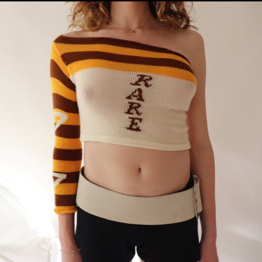 'Rare' One Shoulder Long Sleeve - Brown/Yellow/White
